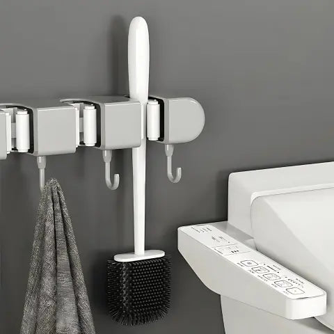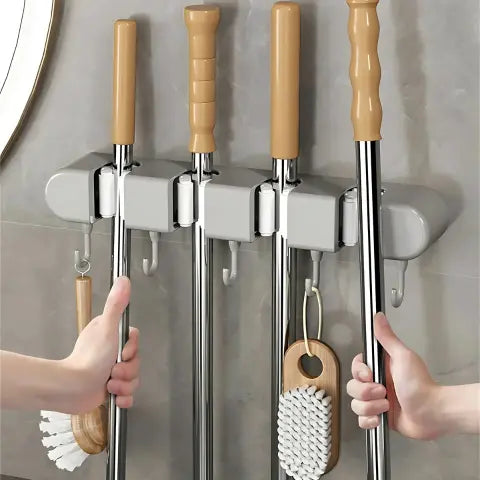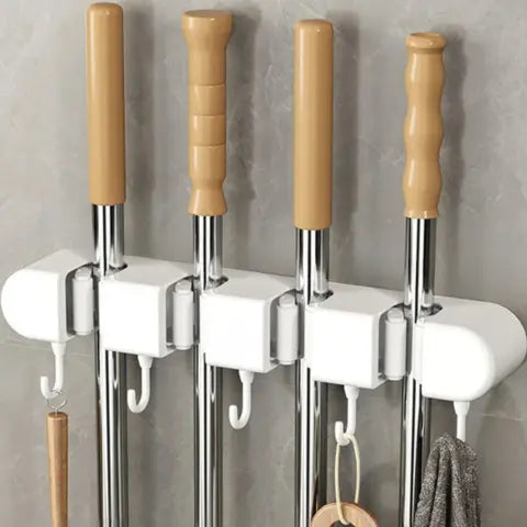 Conçue pour un usage intensif, cette Accroche Balai Mural est munie de 4 supports en caoutchouc renforcé à mécanisme à ressort, assurant une prise antidérapante fiable sur tout outil à manche long, même en conditions humides. Les 5 crochets intégrés permettent le stockage optimisé d'accessoires supplémentaires, garantissant un poste de travail ordonné et une accessibilité immédiate aux équipements.