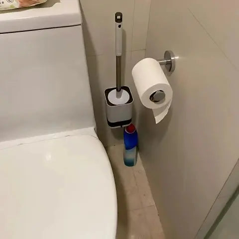Brosse WC | SaniFlow™ : L'accessoire indispensable pour des toilettes toujours impeccables ! Profitez d'un nettoyage efficace et sans effort avec notre Brosse WC avec Réservoir de drainage. Conçue pour allier hygiène, praticité et durabilité, elle révolutionne l'entretien de vos toilettes grâce à ses fonctionnalités innovantes. Nettoyez tous les angles et coins difficiles d'accès La brosse wc est non seulement flexible, mais aussi robuste. Elle peut atteindre tous les coins difficiles d'accès, notamment sous et autour du bord de la cuvette des toilettes. Elle garantit un nettoyage complet pour vous offrir des toilettes impeccables à chaque utilisation. Réservoir intégré pratique Contrairement aux brosses traditionnelles, la brosse wc SaniFlow dispose d'un bac de récupération amovible qui élimine l'excès d'eau, provoquant ainsi les gouttes et mauvaises odeurs. Son tiroir, facile à retirer et à nettoyer, garantit une salle de bain toujours propre et bien organisée. Faites du nettoyage des toilettes un plaisir Avec sa poignée ergonomique en acier de 43 cm de long, cette brosse vous permet de garder une posture agréable pendant le nettoyage. Son design élégant et épuré, fait de cet accessoire un objet chic et mignon qui embellira votre salle de bain. Rendre l'entretien des toilettes aussi agréable n'a jamais été aussi simple ! Installation ultra-Facile, sans outil La brosse de toilette SaniFlow est dotée d'un support carré, stable et conçu pour être posé au sol sans risque de renversement. Vous avez également la possibilité de l'installer au mur grâce à l'autocollant fourni. Il vous suffit de suivre les étapes illustrées sur la photo ci-dessus. Facile à entretenir Un simple rinçage suffit pour la garder propre et prête à l'emploi. Spécifications